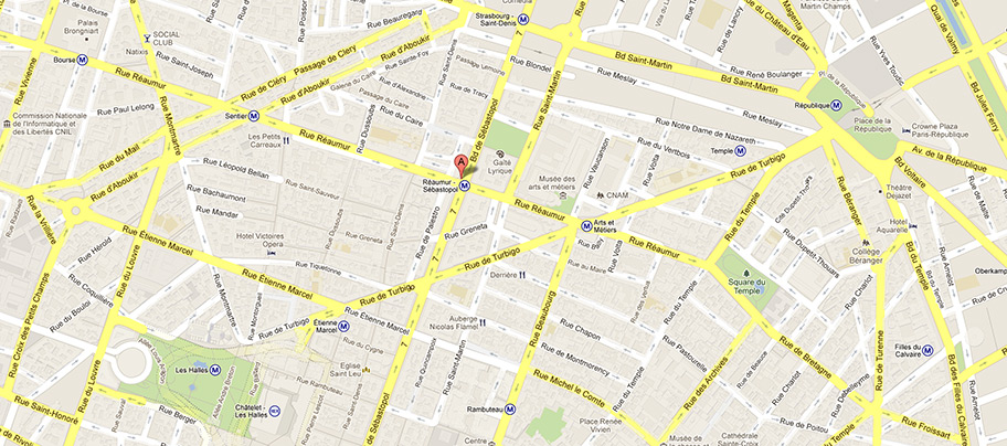 Notre centre de formation vous accueille du lundi au jeudi de 8:30 à 18:30 et le vendredi de 8:30 à 17:30 Stations de Métro les plus proches Réaumur-Sébastopol : 10 mètres Arts et métiers : 280 mètres Strasbourg St Denis : 375 mètres Les Halles : 800 mètres